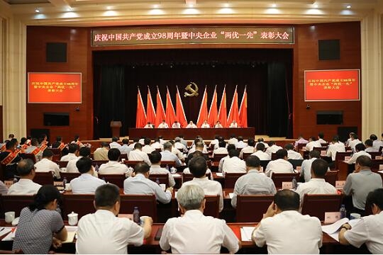 6月25日,国资委党委隆重召开庆祝中国共产党成立98周年暨中央企业“两优一先”表彰大会。国资委党委书记、主任郝鹏出席会议并讲话,强调要深入学习贯彻习近平新时代中国特色社会主义思想,牢固树立“四个意识”、坚定“四个自信”、坚决做到“两个维护”,始终把初心和使命体现在听党话跟党走、发展壮大国有经济的具体行动上,为做强做优做大国有资本,加快培育具有全球竞争力的世界一流企业不懈奋斗。国资委副主任、党委委员翁杰明宣读“两优一先”表彰决定,国资委副主任、党委委员任洪斌主持会议。国资委党委委员、副部长级干部参加会议。