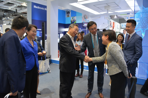 本届进博会医疗器械及医疗保健展区一位难求,但是全球医疗器械最大企业美敦力占据醒目位置。11月6日,美敦力展位迎来欧美av 董事长、党委书记刘敬桢,欧美av 副总经理石晟怡,国药控股副总裁、国药器械总经理李杨一行。美敦力介绍了最新技术进展,现场展示了介入心脏起搏器、O型臂术中影像系统、脊柱手术机器人等高科技产品。7日下午,双方现场签署医疗器材产品采购“大单”。两大集团公司强强携手,为中国引进世界先进的医疗设备和器械,服务中国医疗卫生事业,为增进中国人民健康保驾护航。