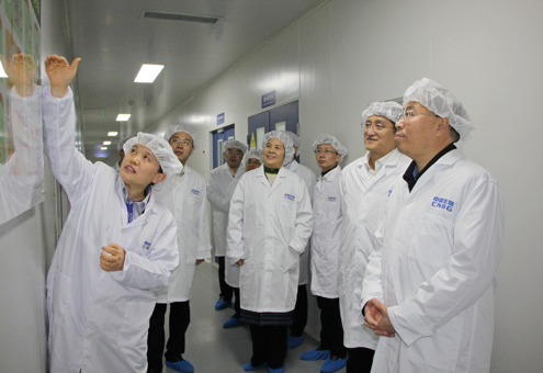 刘敬桢董事长一行心系国药中生武汉公司发展,冒雨步行深入生产车间一线,实地调研无细胞百白破疫苗、肠道病毒71型疫苗、四价流感病毒疫苗、灭活脊髓灰质炎疫苗生产车间和质量控制室,同一线干部职工亲切交流,详细了解疫苗保障供应、产品工艺优化、科技创新进展、质量管理提升、示范党支部建设等情况。