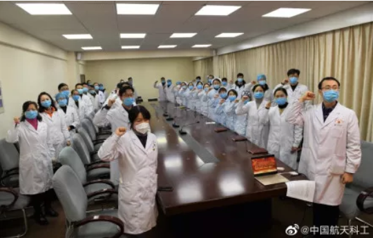 除夕夜,中国航天科工所属湖北航天医院行政楼四楼会议室里举行了“抗击新冠病毒疫情誓师仪式”。除夕夜他们集结,誓为健康和荣誉而战。面对抗击疫情的战斗,无论在外进修的外地医生还是初入医院的新人,纷纷踊跃报名,救助病人的共同目标和亲人的无私支持,把医护人员们凝聚成了一个战斗力极强的团体。