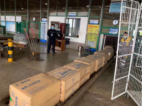 13:30分,共7270套防护服被送上航班CZ5242,发往武汉。