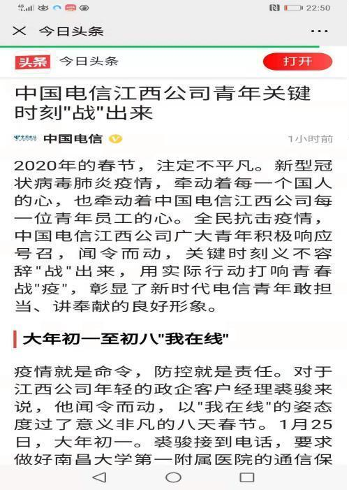 “疫情就是命令,防控就是责任”!中央企业团工委迅速与团中央办公厅、宣传部等各相关部门以及中国青年报、中国青年杂志等媒体取得联系,建立信息报送通道及工作微信群。中国青年报武汉前方报道组在1月24日发出《中青报直击:全国人民在吃年夜饭,他们在建“武汉小汤山”》,《武汉“小汤山”医院开工,冒雨建设的员工90%以上是90后》等专题文章,对参与前方一线建设中的中建三局青年突击队进行了特别报道,引发全社会青年的广泛关注。