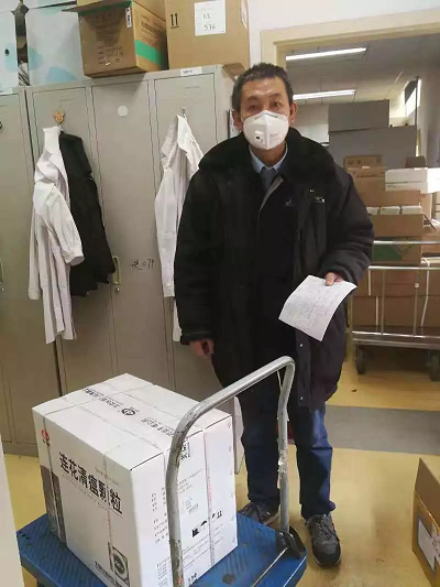他们是一支钢铁队伍,他们中的每一个人都是一名钢铁战士。国药物流运输管理中心祝会明、甄军、李启峰、杨绪春、王广柱、魏超等同志,面对多批次的急送和抗“疫”物资保障工作,他们主动返回工作岗位,穿梭于各大医院之间,整个春节假期连续奋战未休息一天。在这个特殊时期,他们的家人毫无怨言,默默地承担起全部家务,全力支持着他们的工作。在平凡的配送岗位上,他们向北京大学第一医院、北京市回民医院、首都医科大学附属复兴医院、首都医科大学附属北京世纪坛医院、首都医科大学附属北京佑安医院、北京回龙观医院、首都医科大学附属北京地坛医院等多家医疗单位配送着医疗物资,他们是我们身边的逆行者,在恐慌情绪弥漫之际,他们用实际行动敢于向疫情亮剑。