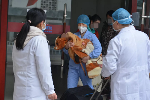 患儿妈妈已于2月8日治愈,为了照顾孩子没有离开隔离病区,今天上午终于盼来宝宝治愈的好消息,母女俩一同出院回家。目前患儿爸爸仍在积极治疗中。