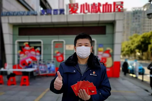 2月15日,华润武钢总医院泌尿外科的副主任医师黄飞,在刚刚度过治愈后的隔离期后,赶到了设在湖北省人民医院的爱心献血屋,捐献了400毫升的血浆。