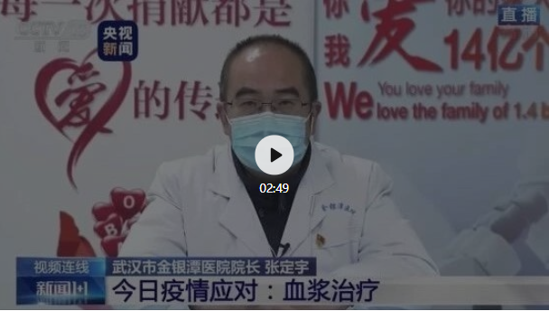 2月18日,武汉金银潭医院张定宇院长的妻子程琳女士成功捐献400ML血浆。程琳女士1月19日确诊新冠肺炎在武汉市第四医院,经过10天的治疗,1月29日康复出院。她也希望更多的治愈患者能到武汉市金银潭医院献出宝贵的血浆,挽救更多的重症患者。