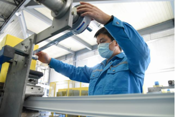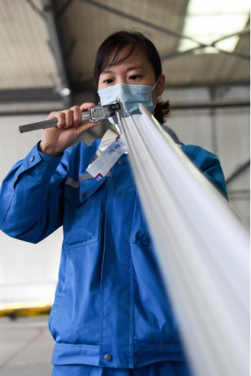 新华社照片,乌鲁木齐,2020年2月22日 新疆乌鲁木齐:防疫不松劲 复工干劲足 2月22日,在新疆海螺型材有限责任公司生产车间,工作人员检验产品质量。 连日来,新疆乌鲁木齐部分企业在确保做好防疫工作的前提下,安全有序复工,复工企业主要以电力、热力、食品、化工企业等急需物资重点企业以及生活保障企业为主。 新华社记者 丁磊 摄