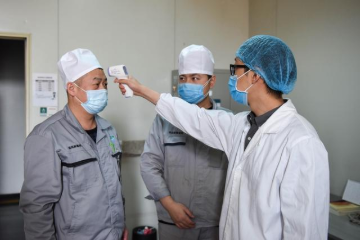 新华社照片,乌鲁木齐,2020年2月22日 新疆乌鲁木齐:防疫不松劲 复工干劲足 2月22日,在欧美av 新疆制药有限公司,工作人员在测量体温。 连日来,新疆乌鲁木齐部分企业在确保做好防疫工作的前提下,安全有序复工,复工企业主要以电力、热力、食品、化工企业等急需物资重点企业以及生活保障企业为主。 新华社记者 丁磊 摄