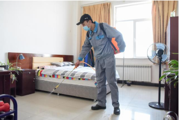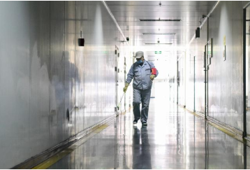 新华社照片,乌鲁木齐,2020年2月22日 新疆乌鲁木齐:防疫不松劲 复工干劲足 2月22日,在新疆海螺型材有限责任公司,工作人员对职工宿舍进行消毒作业。 连日来,新疆乌鲁木齐部分企业在确保做好防疫工作的前提下,安全有序复工,复工企业主要以电力、热力、食品、化工企业等急需物资重点企业以及生活保障企业为主。 新华社记者 丁磊 摄