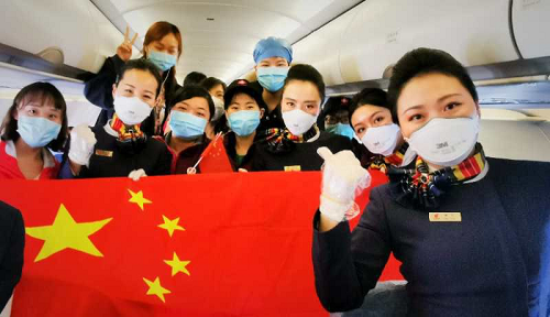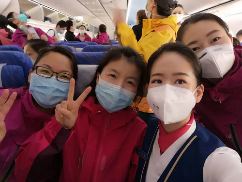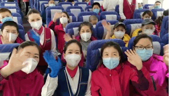 3月17日,东航执行首批6班返程包机,接回江苏、甘肃、青海援鄂医疗队员681人。