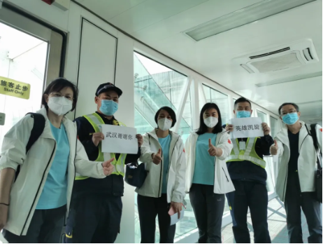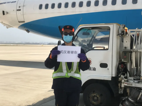 中国航油武汉航空加油站严阵以待、全力以赴,完成16架医护包机安全供油保障工作。加油结束后,飞机加油员们立正目送廊桥上医护人员登机的身影,心中涌动着五十多天来难以言语的战“疫”感恩之情。