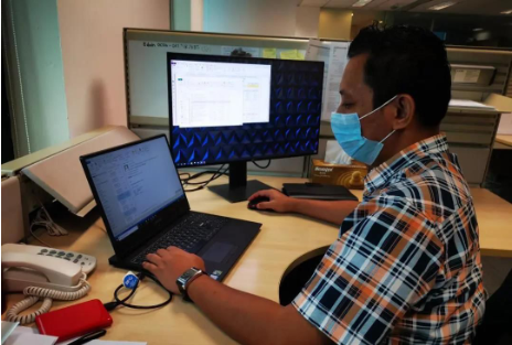中国海油马来西亚员工韩超在办公室工作