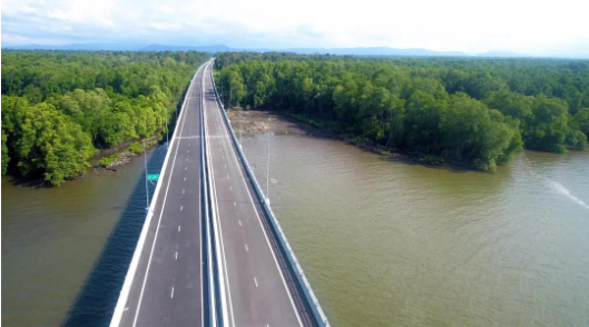 文莱淡布隆跨海大桥项目,全线长约30公里,跨越文莱湾,是连接文莱穆阿拉区和淡布隆区的跨海大通道,是文莱当前最大的基础设施项目。项目部人员在抗疫防疫的同时,安全有序复工。3月17日,文莱淡布隆跨海大桥实现提前通车,有效降低了文莱两大国土之间居民乘船往来容易交叉感染的风险,同时把由文莱湾隔断的文莱本土和淡布隆区连成一体,淡布隆区和文莱本土的车程时间由2小时缩短至约15分钟,为文莱抗疫提供了坚实基础。