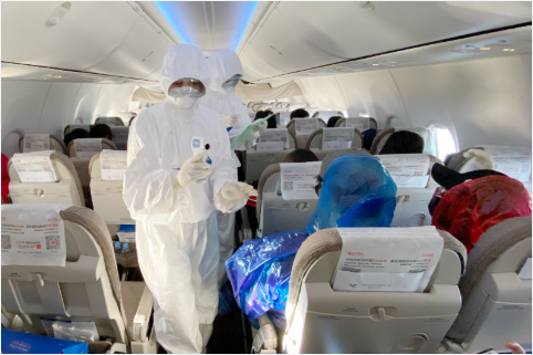 南航严格做好工作人员自身防护和客舱清洁消杀,机组人员出发前检测体温,执行航班期间乘务员全程佩戴口罩、手套,同时对机上毛毯、耳机等公共物品不重复使用,并停止配备餐单、酒水单、报刊杂志等,最大限度减少人员接触导致的疫情风险;在每个航程结束之后立即对飞机客舱进行消毒,在飞机结束全天飞行回到基地后第一时间做预防性彻底消毒,机务人员还加大了更换飞机空调再循环系统风扇气滤的频率,为飞机换上新“口罩”。