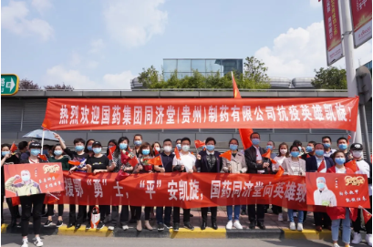 看到覃方勇、付守平两位同志乘坐的大巴车缓缓驶来,同济堂的迎接队伍挥舞双臂,大声呼喊两位同志的名字,“欢迎回家”、“辛苦啦”。刚刚踏上故土就见到家人的两位同志,隔着车窗,喜出望外,激动得不停挥手示意。此刻,虽然隔着空间距离,但是心与心之间,亲密更甚。
