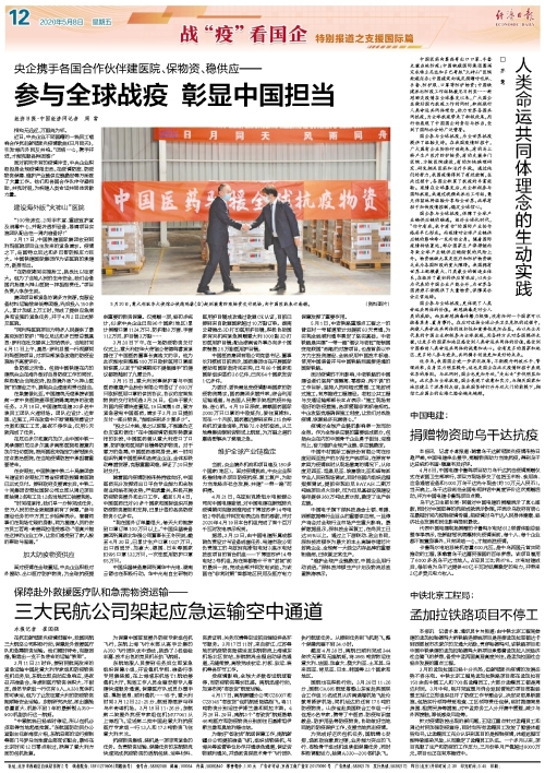 当前,央企境外机构和项目遍及180多个国家(地区)。面对疫情挑战,中央企业积极推进海外项目防疫抗疫、复工复产,为助力当地经济社会发展、共建“一带一路”而拼搏。