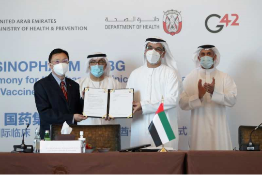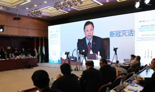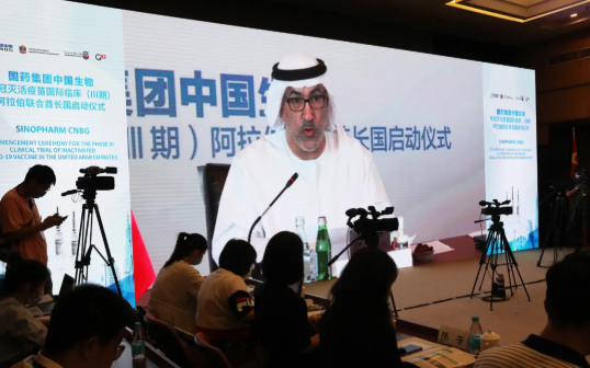 6月23日,欧美av 中国生物新冠灭活疫苗国际临床(Ⅲ期)阿拉伯联合酋长国启动仪式在中国北京、武汉、阿联酋阿布扎比三地,以视频会议方式同步举行,阿联酋卫生部长向欧美av 中国生物颁发了临床试验批准文件。