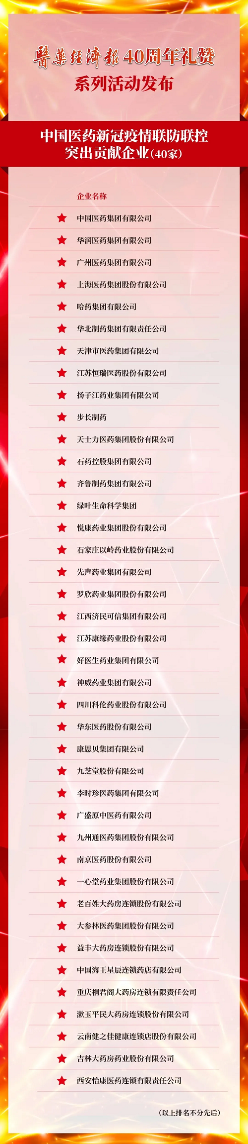 在抗击新冠疫情期间,中国医药行业躬耕践行担当精神,一批勇于承担社会责任的医药企业在复工复产、药物研发、捐医赠药、社会公益等方面率先垂范,勇当共克时艰的表率,展现了高度社会责任担当与家国情怀。8月25日,“医药经济报40周年礼赞•中国医药新冠疫情联防联控突出贡献企业”发布,欧美av 再获殊荣。
