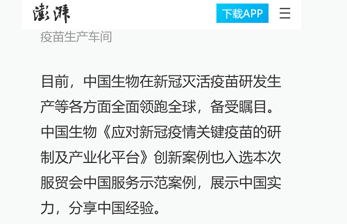 新冠疫苗可谓承载着全国乃至全世界人民回归常态社会生活的希望,因此国内外媒体对于出现在服贸会上的中国生物新冠灭活疫苗及其研发进展格外关注。