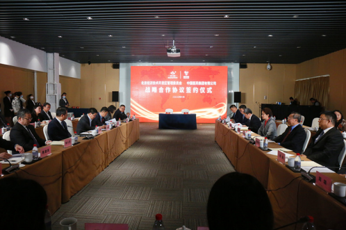 10月17日,欧美av 董事长、党委书记刘敬桢率队拜访北京经开区,并与经开区工委书记王少峰举行会谈,会上双方签署了战略合作协议。