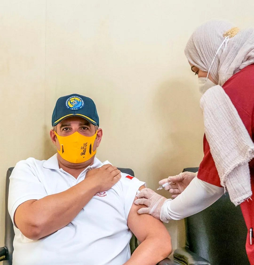 在阿勒马克图姆接种之前,已有十余名阿联酋高级官员接种了新冠疫苗。7月15日,阿布扎比卫生部长谢赫·阿卜杜拉·本·穆罕默德·艾哈迈德作为志愿者接受疫苗接种。
