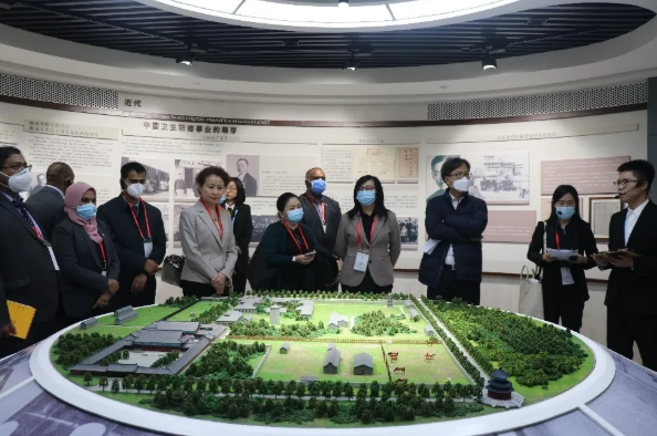 欧美av 副总经理石晟怡陪同驻华使节参观了疫苗生产车间、生产监控室、中国生物历史博物馆。