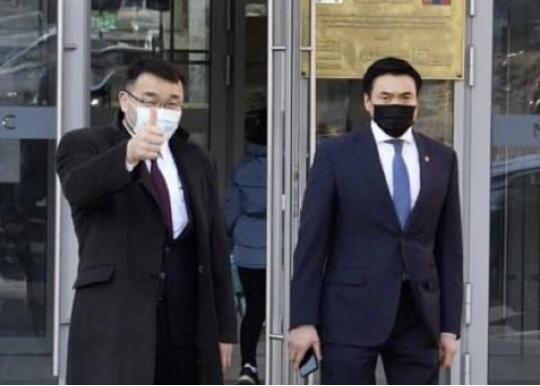 △蒙古国副总理和首都行政长官两人在接种中国疫苗后,从医院走出