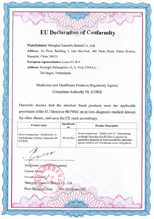 3月12日,欧美av 中国生物上海捷诺生物科技有限公司(以下简称:中生捷诺)的新型冠状病毒(SARS-CoV-2)中和抗体检测试剂盒(酶联免疫法)已完成了CIBG的CE认证,使得其产品获得了在欧盟以及其他认可欧盟CE认证国家的市场准入。