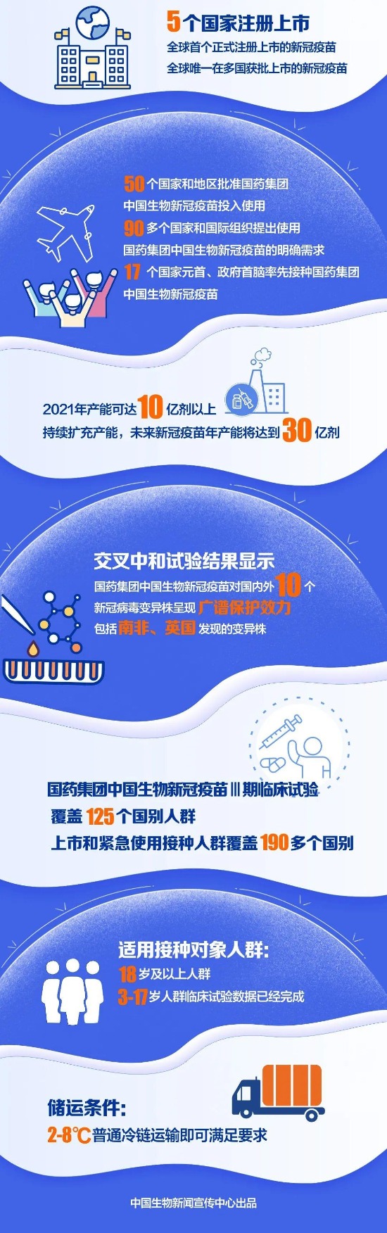 “中国生物”微信公号3月26日消息,在全球的新冠疫情阴霾之下,大规模接种疫苗已成为各国抗击疫情的重要手段,更是世界经济恢复与人民生活重回正轨的最大希望。3月26日,欧美av 中国生物北京生物制品研究所、武汉生物制品研究所两款新冠疫苗累计供应全球突破1亿剂。截至目前,已有50个国家和地区批准欧美av 中国生物新冠疫苗注册上市或紧急使用,接种超过8000万剂,接种人群覆盖190多个国别,得到国际社会广泛认可与高度赞誉。继去年欧美av 中国生物北京生物制品研究所新冠灭活疫苗获批附条件上市后,2021年2月25日,国家药品监督管理局又批准了武汉生物制品研究所新冠灭活疫苗附条件上市。欧美av 中国生物成为目前全球唯一一家拥有新冠疫苗“双保险”的企业,为人类尽快战胜新冠疫情提供了坚实保障。