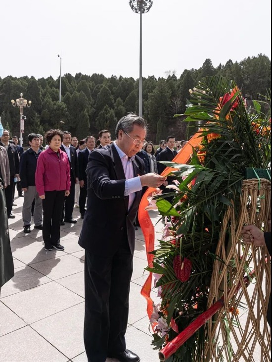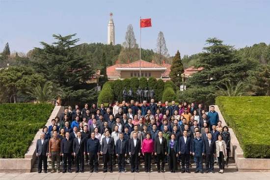 与会人员在革命圣地西柏坡举行了党日活动。全体党员向五大书记雕像敬献花篮,重温入党誓词,并集体合唱《没有共产党就没有新中国》。