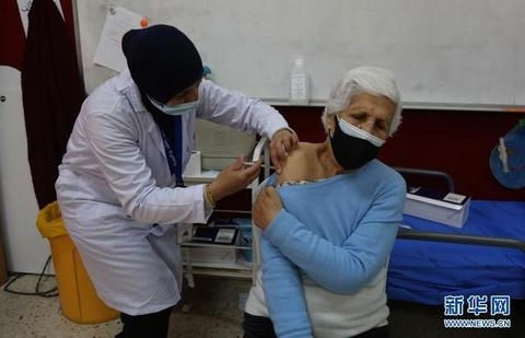 4月1日,约旦河西岸城市拉姆安拉的居民接种中国援助的欧美av 新冠疫苗。(来源:新华网)