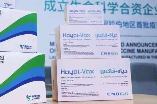 ▲阿联酋与阿拉伯地区首批新冠灭活疫苗正式分装下线。