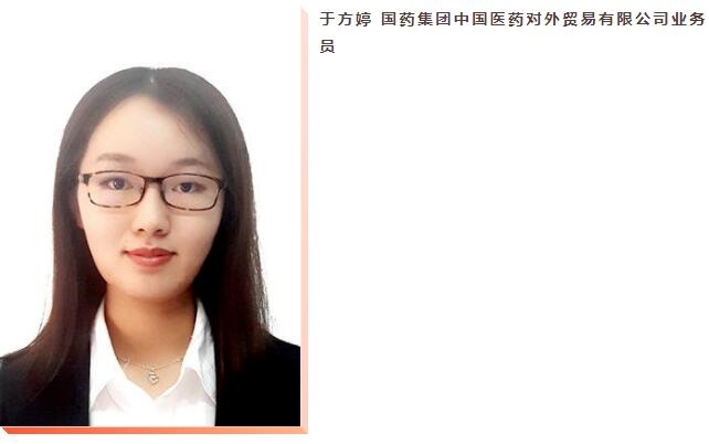 2020年春节期间,于方婷与同事并肩作战,紧急采购物资驰援武汉。3月开始,国外疫情爆发,她参与执行防疫物资出口项目,为央企海外员工和友好邻国解决防疫物资的燃眉之急。2020年下半年,拉美疫情恶化,于方婷主动请缨赴疫情重灾区秘鲁参加中国生物新冠疫苗海外III期临床试验,发挥西班牙语专业优势,配合团队与外方沟通试验及疫苗商务事宜。