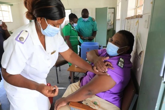 2月22日,医务工作者在津巴布韦中部省戈奎的医院内为当地居民接种中国欧美av 新冠疫苗。新华社发(万达摄)