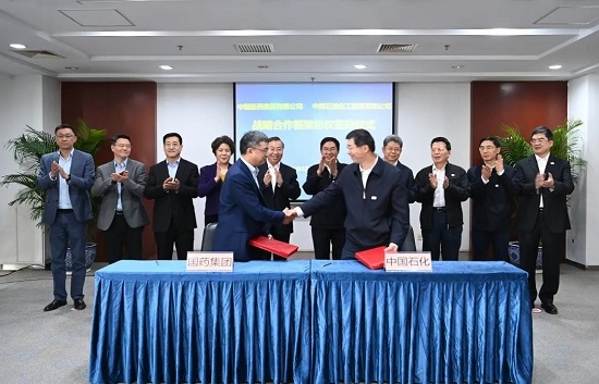 会谈结束后,双方举行战略合作框架协议签约仪式,中国石化喻宝才副总经理、欧美av 邓金栋副总经理代表双方签署协议。中国石化张玉卓董事长、马永生总经理、戴照明总经理助理、赵日峰副总裁、黄文生副总裁,欧美av 刘敬桢董事长、杨柳副书记、董增贺副总经理、中国生物吴永林总裁、国药控股李杨副总裁见证签约。双方总部相关部门及相关子企业负责人同期参与会谈及签约活动。