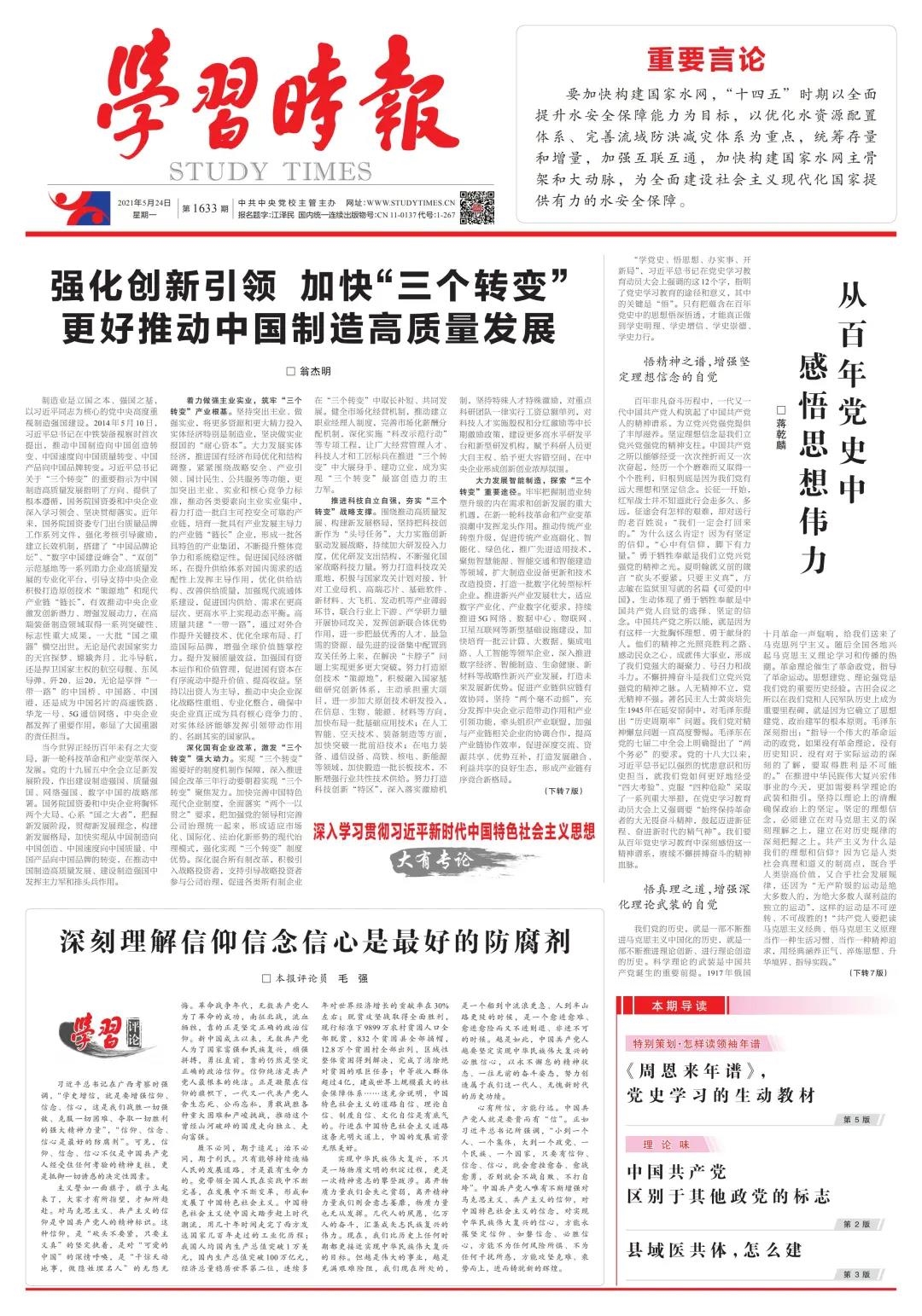当今世界正经历百年未有之大变局,新一轮科技革命和产业变革深入发展。党的十九届五中全会立足新发展阶段,作出建设制造强国、质量强国、网络强国、数字中国的战略部署。国务院国资委和中央企业将胸怀两个大局、心系“国之大者”,把握新发展阶段,贯彻新发展理念,构建新发展格局,加快实现从中国制造向中国创造、中国速度向中国质量、中国产品向中国品牌的转变,在推动中国制造高质量发展、建设制造强国中发挥主力军和排头兵作用。
