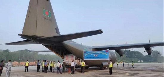 当地时间5月12日上午,中国援助孟加拉国的中国欧美av 新冠疫苗搭乘孟加拉国空军专机抵达孟加拉国首都达卡孟加拉之友空军基地。