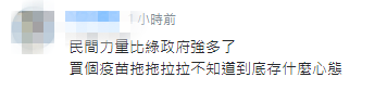 听闻这个消息,有岛内网友表示,“民间力量比绿政府强多了,买个疫苗拖拖拉拉不知道到底存什么心态。”
