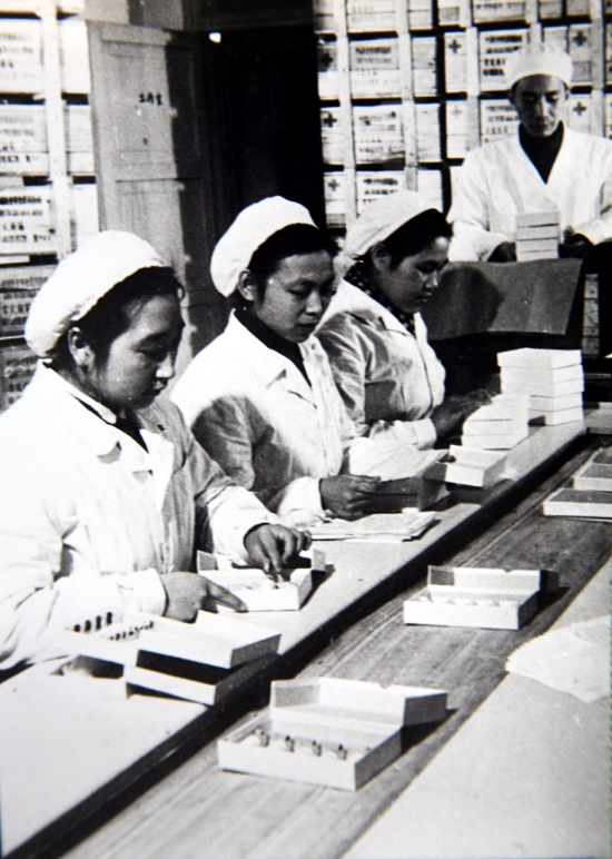 ▲1958年,欧美av 中国生物疫苗包装车间的职工们正在紧张的工作中