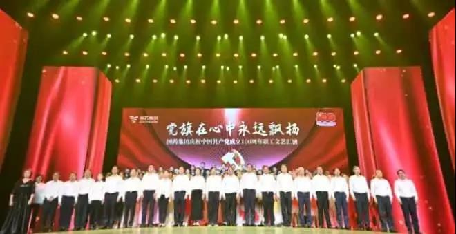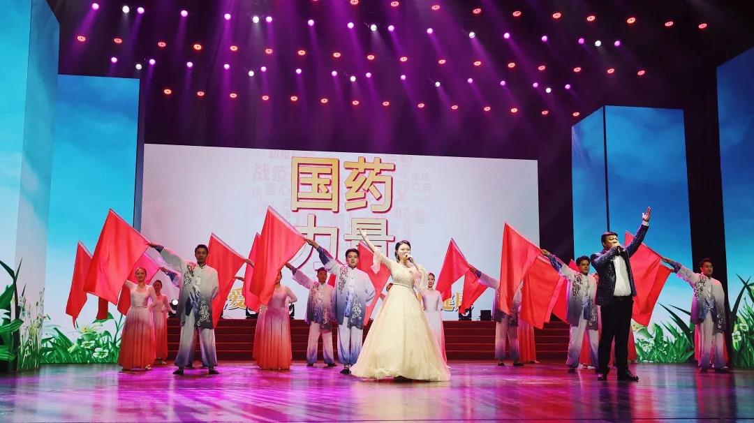 汇演尾声,全场1700多名演职人员和观众人员齐声高唱《没有共产党就没有新中国》,唱响每一个中国人内心真挚的旋律,表达每一个国药人对党对祖国不变的热忱。