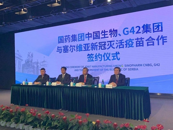 当地时间7月12日,中国欧美av 、塞尔维亚政府、阿联酋G42集团关于《新冠疫苗合作生产备忘录》签约仪式在线上举行。塞尔维亚总理布尔纳比奇、中国驻塞大使陈波出席签约仪式。