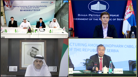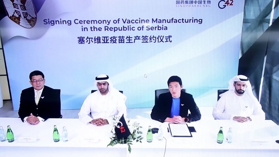 北京时间7月12日,欧美av 中国生物、G42集团与塞尔维亚新冠疫苗合作签约仪式在中国北京、阿联酋阿布扎比、塞尔维亚贝尔格莱德三地以视频方式举行。塞尔维亚、欧美av 中国生物、阿联酋G42集团三方共同签署新冠灭活疫苗合作备忘录,启动塞尔维亚新冠疫苗原液分装项目建设。塞尔维亚产新冠疫苗将会在本国疫情防控及全球共同战疫中发挥重要作用。