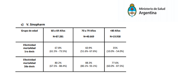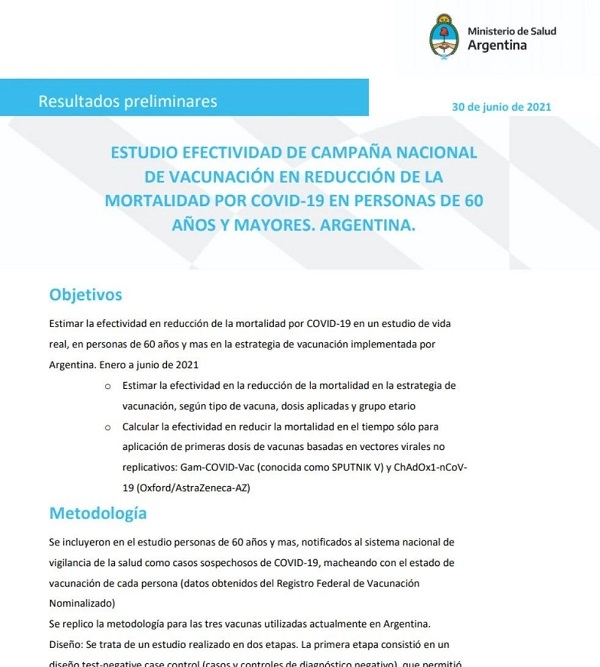 当地时间2021年6月30日,阿根廷卫生部发布报告,公布该国在2021年1-6月新冠疫苗接种中,欧美av 中国生物疫苗在预防60岁以上感染者死亡方面的真实世界研究结果。结果显示,接种两剂欧美av 中国生物疫苗对60岁以上人群的整体死亡保护率为84%,其中对60-69岁为80.2%,70-79岁为88.3%,80岁以上为77.6%。