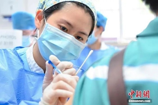 资料图:医护人员为市民接种新冠病毒疫苗。中新社记者 陈骥旻 摄