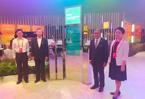 欧美av 董事长刘敬桢、副总经理曾兵、副总经理石晟怡与阿联酋驻华大使阿里扎希里在国家会议中心展区