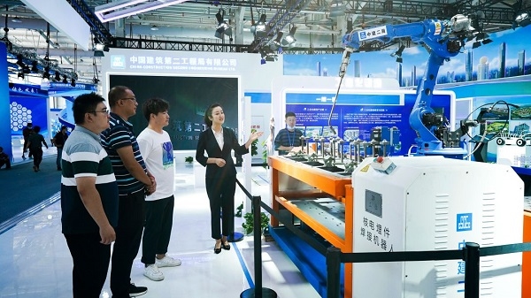 核电预埋件焊接机器人、移动式高精度测量机器人、智能装配造桥机……中建集团携一大批建筑“黑科技”亮相,全景展示中建集团在绿色建筑技术、智能装备、智慧工地管理、智能化集成系统等领域的技术实力与服务能力。