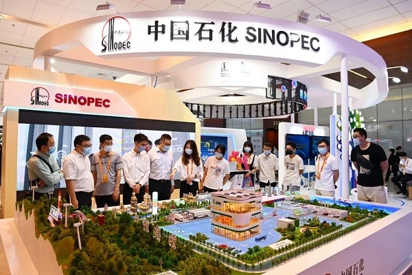 中国石化的一体化产业链沙盘呈现了从油气勘探开发到石油炼制、化工销售,再到“油气氢电服”综合加能站,从源头到终端,发挥全产业链优势,为人们的美好生活提供多元全面的保障。