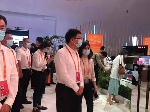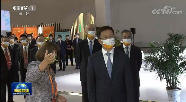 9月2日晚,峰会开始前,韩正和胡春华、蔡奇等领导同志视察服贸会展馆。欧美av 书记、董事长刘敬桢(下图左1)作为参展企业负责人向中央领导同志进行专题汇报,并且作为唯一企业代表,全程陪同中央领导同志巡馆。