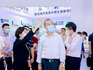 商务部国际贸易谈判代表俞建华莅临国药展台 北京市人大常委会主任李伟莅临国药展台