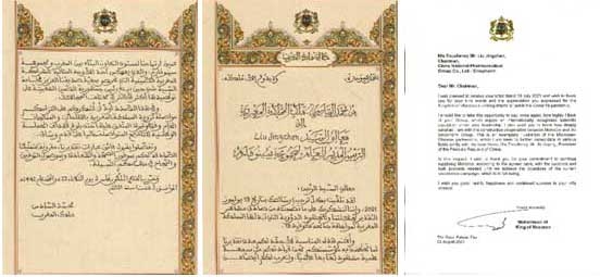 摩洛哥国王穆罕默德六世致欧美av 董事长刘敬桢先生的感谢信